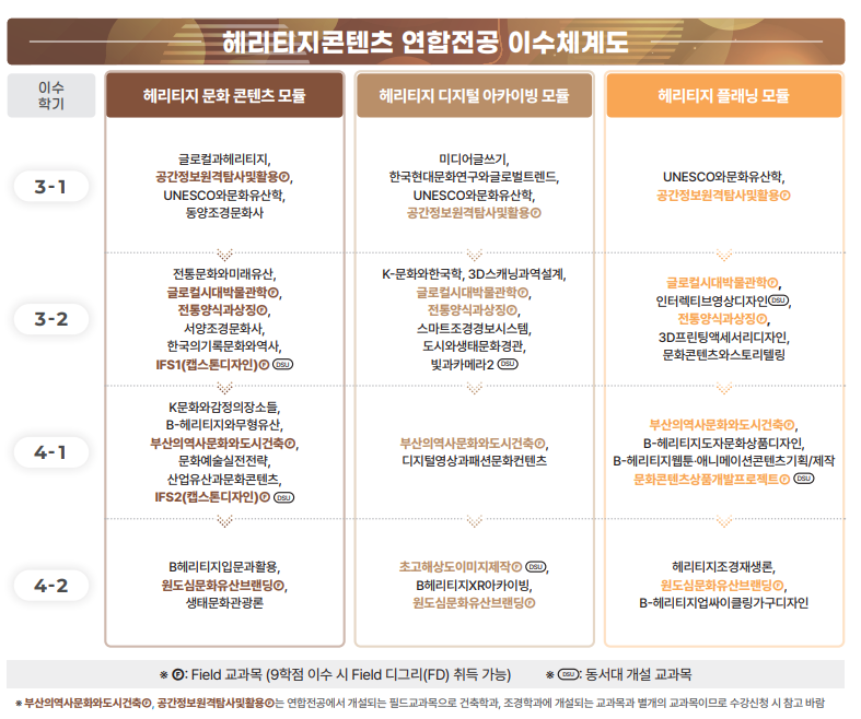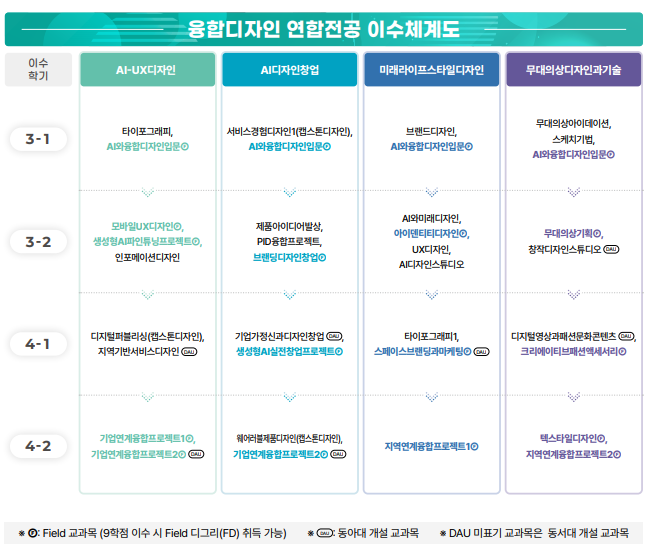 Academic 학사안내 메인으로 이동 학사안내 학교소개 입학안내 대학 대학원 학사안내 대학생활 동아광장 닫기 교과과정 수업 교과과정 학적 성적 졸업 비교과 과정 다전공안내 학점인정 신청 등록 장학 예비군 서비스 바로가기 닫기 글로컬연합대학 Field 연합전공 안내 전공 마이크로모듈제 안내 교과과정 안내 글로컬연합대학 Field 연합전공 안내 닫기 교과과정표 연합전공 안내 교과과정표 공지사항 자료실 QNA 닫기 학사안내 Academic 학사안내 수업 수강신청 및 수강정정 개인 강의시간표 수강신청확인서 강의실별 강의시간표 조회 재수강 안내 계절학기 등록금 고지서 계절학기 등록금 납부확인서 계절학기 수강취소 신청 시험안내 공결 안내 및 신청 학교현장실습 신청 학습관리시스템(LMS) GeLC(부산울산경남권역 이러닝지원센터) 영호남4개대학 (조선대학교) 영호남4개대학 (원광대학교) 영호남4개대학 (영남대학교) 교과과정 전공 마이크로모듈제 안내 교과과정 안내 글로컬연합대학 Field 연합전공 안내 연합전공 안내 교과과정표 공지사항 자료실 QNA 학적 휴학 복학 제적 자퇴 재입학 전과 학적조회 / 정정 성적 성적관리 기준 성적조회 강의평가 학사경고 유급 이수구분변경 졸업 졸업기준 안내 졸업논문 학사학위취득 유예 조기졸업 비교과 과정 비교과 홈페이지 바로가기 다전공안내 다전공 이수방법 요약 다전공 개요 복수전공 부전공 연계전공 자기설계연계전공 융합전공 교양 학사학위과정 학점인정 신청 특별학점 인정 사회봉사학점 군복무 중 취득학점 인정 등록 등록금 납부 안내 등록·장학 내역 조회 등록금 납입확인서 교육비 납입증명서 등록금 분할납부 신청 장학 장학 공지사항 장학 규정 및 지침 국가장학금 안내 학자금 대출 안내 장학금 인터넷 신청 장학내역 조회 장학금수혜확인서 예비군 예비군 훈련 안내 예비군 신고 안내 공지사항 서비스 바로가기 2026학년도 1학기 수강신청안내 대학일자리플러스센터(인재개발과) 학생군사교육단 학사안내 FAQ 전공 마이크로모듈제 안내 교과과정 안내 글로컬연합대학 Field 연합전공 안내 글로컬연합대학 Field 연합전공 안내 SNS 목록열기 FACEBOOK 공유하기 TWITTER 공유하기 BLOG 공유하기 KAKAO STORY 공유하기 SNS 목록닫기 인쇄 url 복사 연합전공 안내 교과과정표 공지사항 자료실 QNA 수소에너지 연합전공 교과과정표전력반도체 연합전공 교과과정표첨단콘텐츠 연합전공 교과과정표융합디자인 연합전공 교과과정표휴먼메타케어 연합전공 교과과정표헤리티지콘텐츠 연합전공 교과과정표